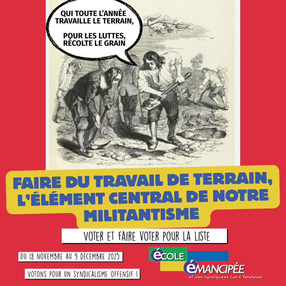 L’École Émancipée défend un syndicalisme au fonctionnement plus horizontal, ancré sur le terrain, à même de recréer des collectifs permettant à tous·tes de s’emparer des métiers, des conditions de travail, des enjeux sociaux.